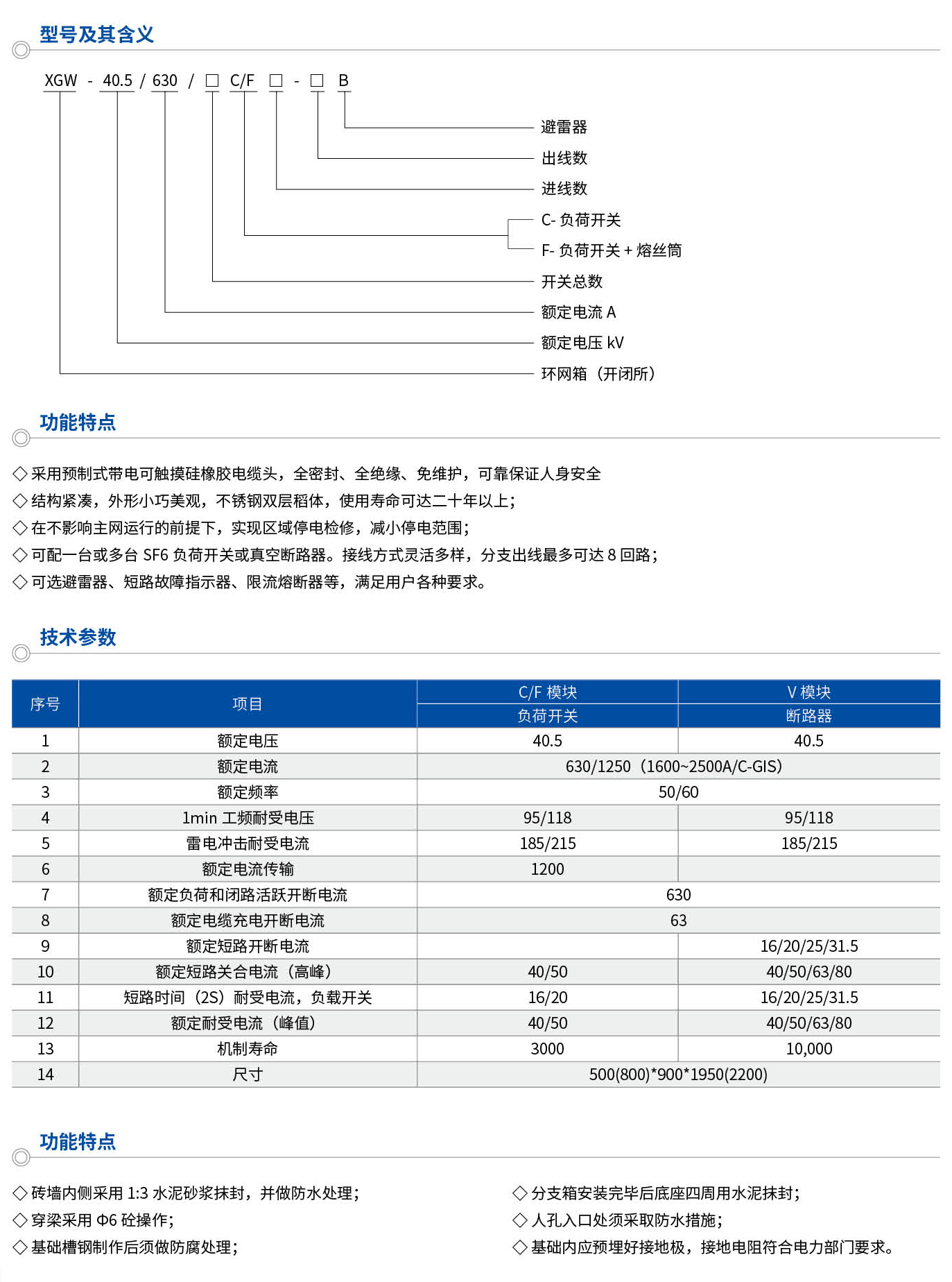 功能特點(diǎn):采用預(yù)制式帶電可觸摸硅橡膠電纜頭,全密封、全絕緣、免維護(hù),可靠保證人身安全.結(jié)構(gòu)緊湊,外形小巧美觀,不銹鋼雙層稻體,使用壽命可達(dá)二十年以上;在不影響主網(wǎng)運(yùn)行的前提下,實(shí)現(xiàn)區(qū)域停電檢修,減小停電范圍;可配一臺(tái)或多臺(tái)SF6負(fù)荷開關(guān)或真空斷路器。接線方式靈活多樣,分支出線可多達(dá)8回路;可選避雷器、短路故障指示器、限流熔斷器等,滿足用戶各種要求。