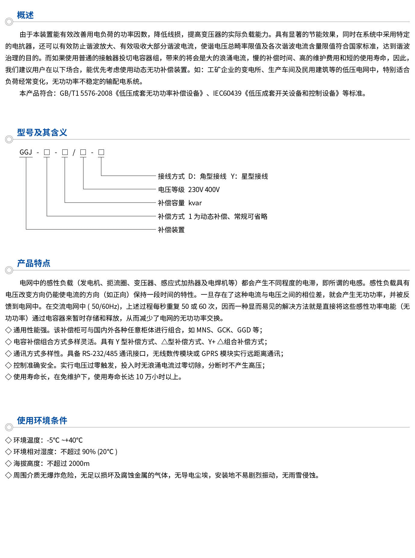由于本裝置能有效改善用電負(fù)荷的功率因數(shù),降低線損,提高變壓器的實際負(fù)載能力。具有顯著的節(jié)能效果,同時在系統(tǒng)中采用特定的電抗器,還可以有效防止諧波放大、有效吸收大部分諧波電流,使諧電壓總畸率限值及各次諧波電流含量限值符合國家標(biāo)準(zhǔn),達(dá)到諧波治理的目的。而如果使用普通的接觸器投切電容器組,帶來的將會是大的浪涌電流,慢的補(bǔ)償時間、高的維護(hù)費用和短的使用壽命,因此,我們建議用戶在以下場合,能優(yōu)先考慮使用動態(tài)無功補(bǔ)償裝置。如:工礦企業(yè)的變電所、生產(chǎn)車間及民用建筑等的低壓電網(wǎng)中,特別適合負(fù)荷經(jīng)常變化,無功功率不穩(wěn)定的輸配電系統(tǒng)。本產(chǎn)品符合:GB/T15576-2008《低壓成套無功功率補(bǔ)償設(shè)備》、IEC60439《低壓成套開關(guān)設(shè)備和控制設(shè)備》等標(biāo)準(zhǔn)。